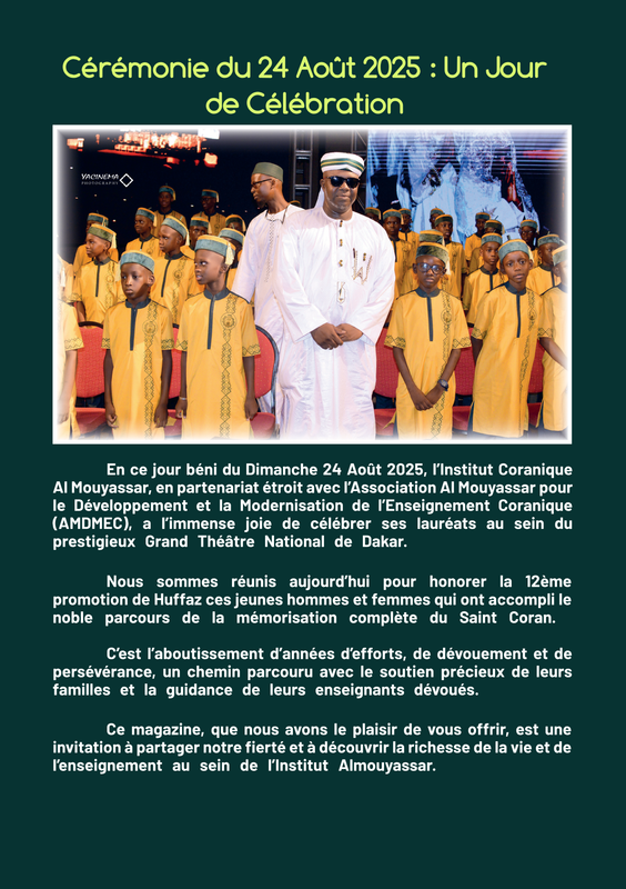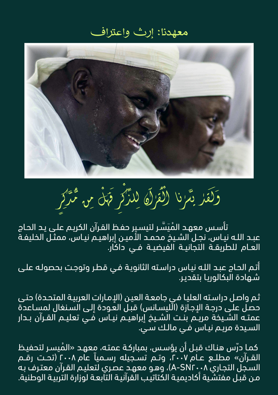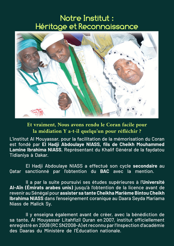 Mission : Le Coran au cœur. Fondé en 2007 par Cheikh El Hadji Abdallah Niasse.
