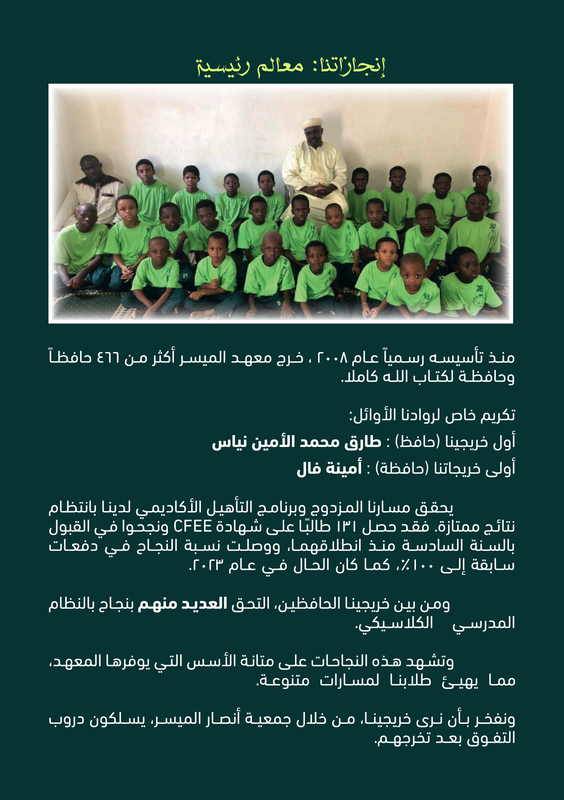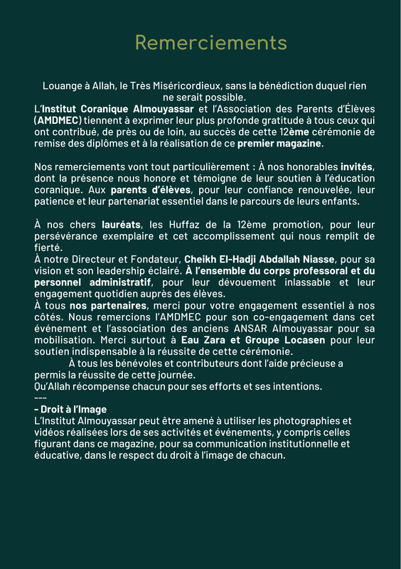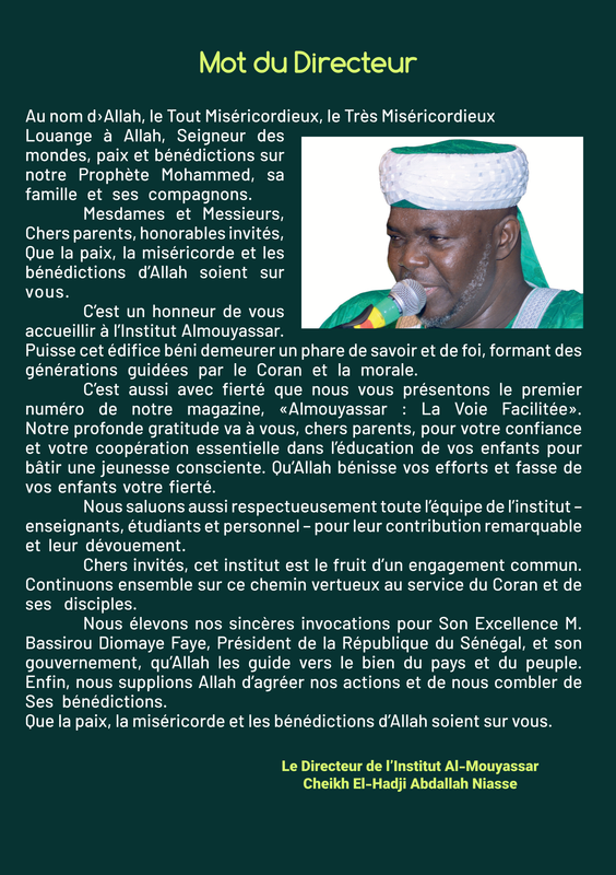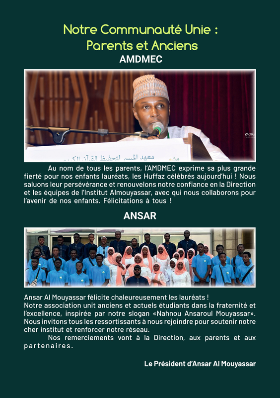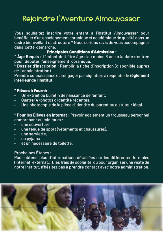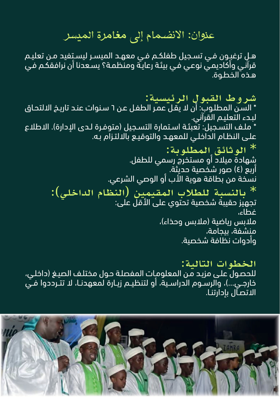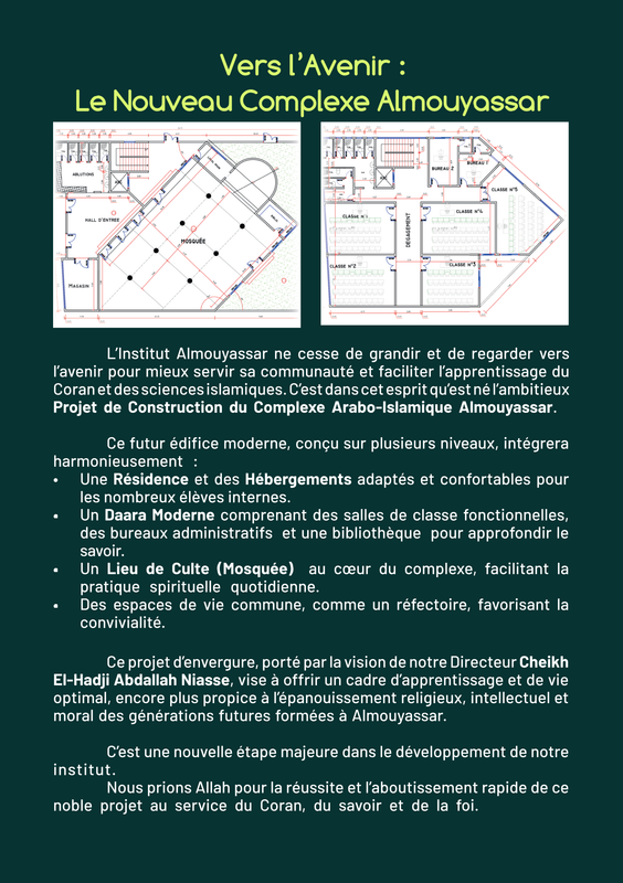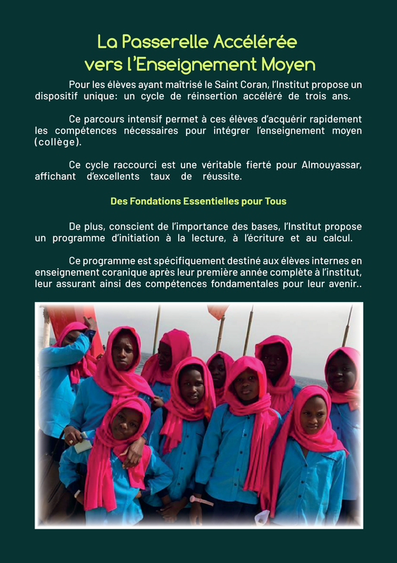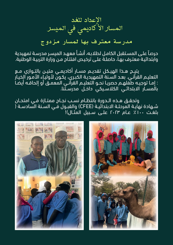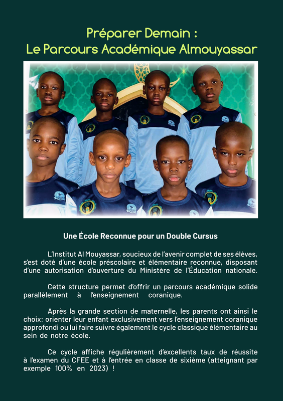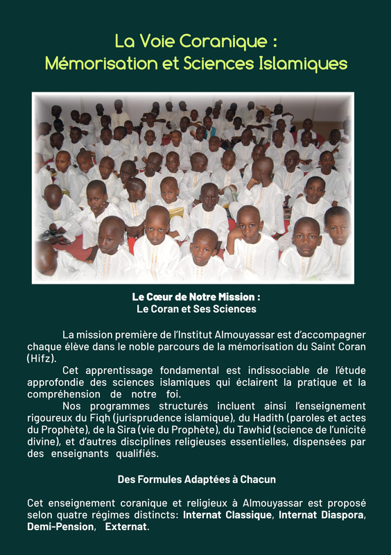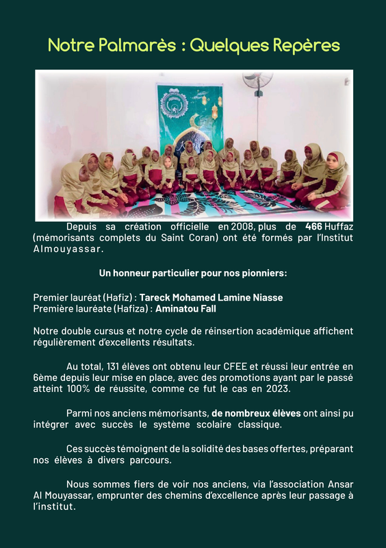 "ALMOUYASSAR est notre maison, le Coran est notre vie, et la réussite est notre voie."